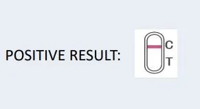 POSITIVE: One colored band in the control region (C). No band in the test region (T). Indicates drug concentration above the cut-off level.