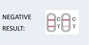 NEGATIVE: Two colored bands appear (C and T). Indicates drug concentration below the cut-off level.